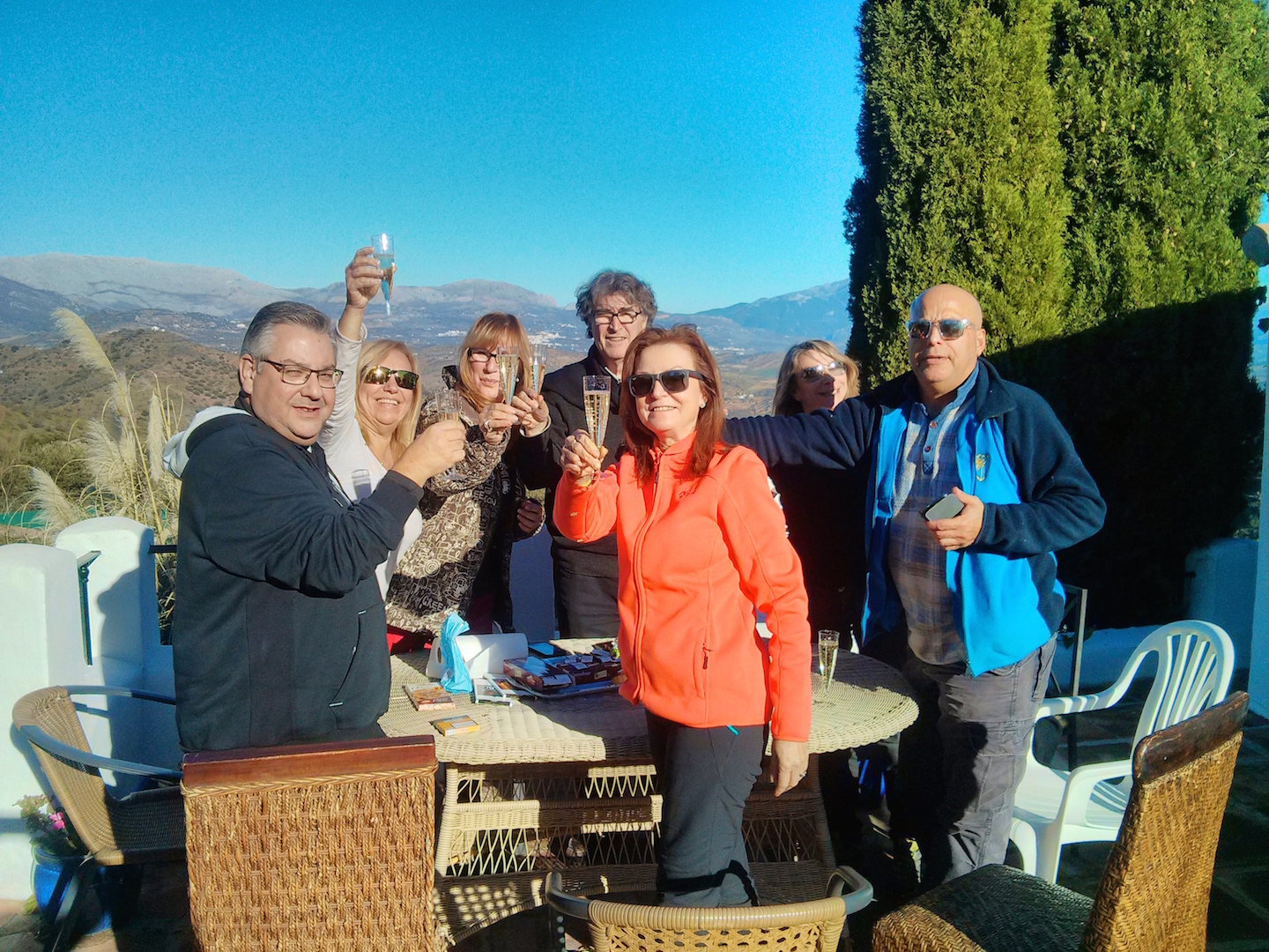 La celebración de Fin de Año la tuvimos super animada, bebimos, cantamos, bailamos y nos reímos a ritmo de los años setenta y ochenta. Hubo actuaciones improvisadas principalmente por el dúo Margarita y M.Carmen imitando a las Grecas que fue todo un espectáculo