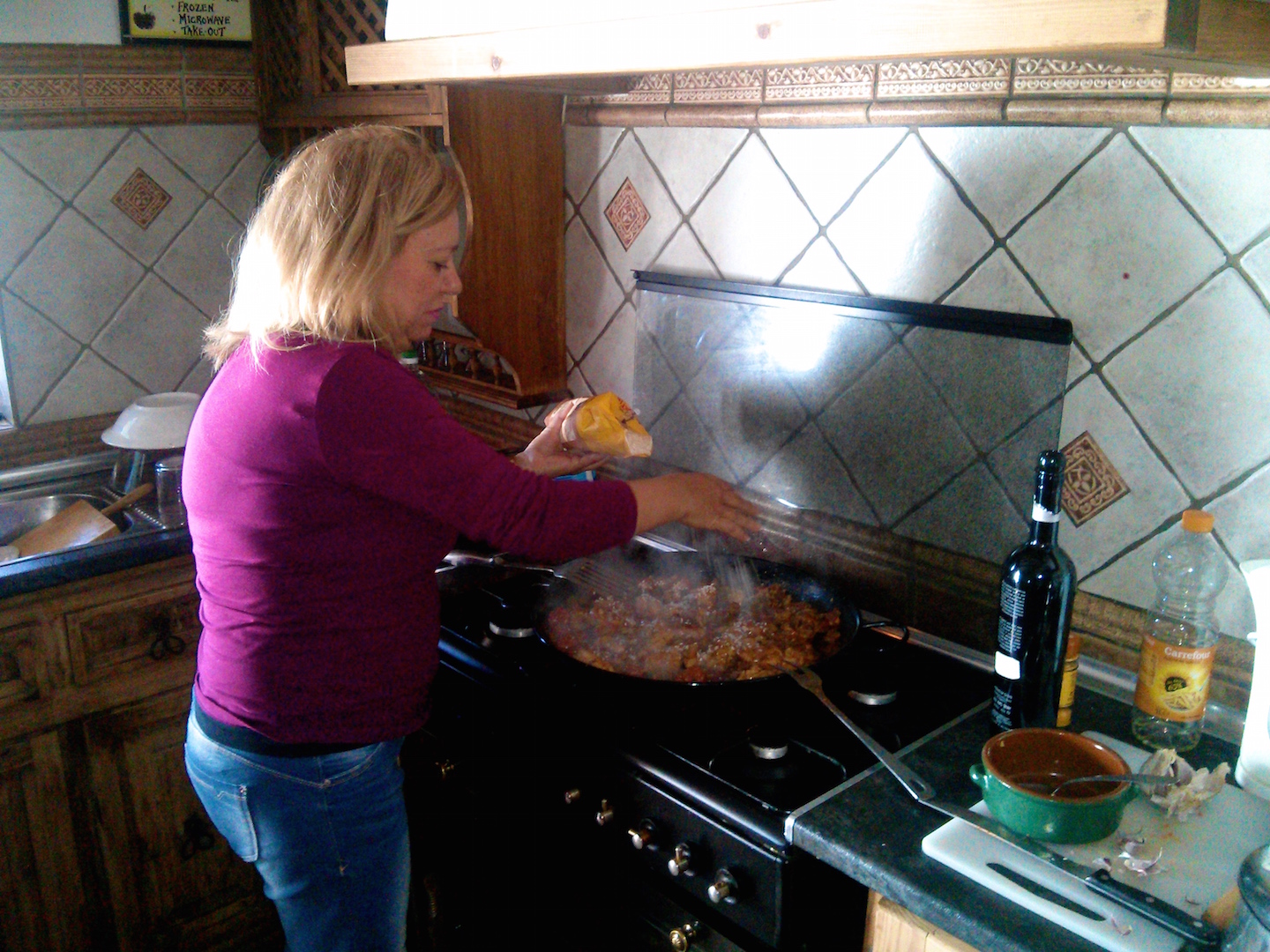 De vuelta de una buena caminata por el campo a preparar una paellita.