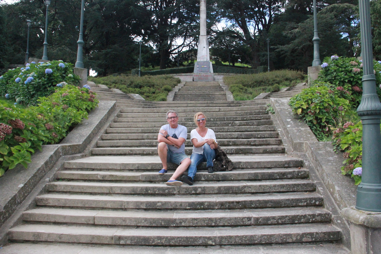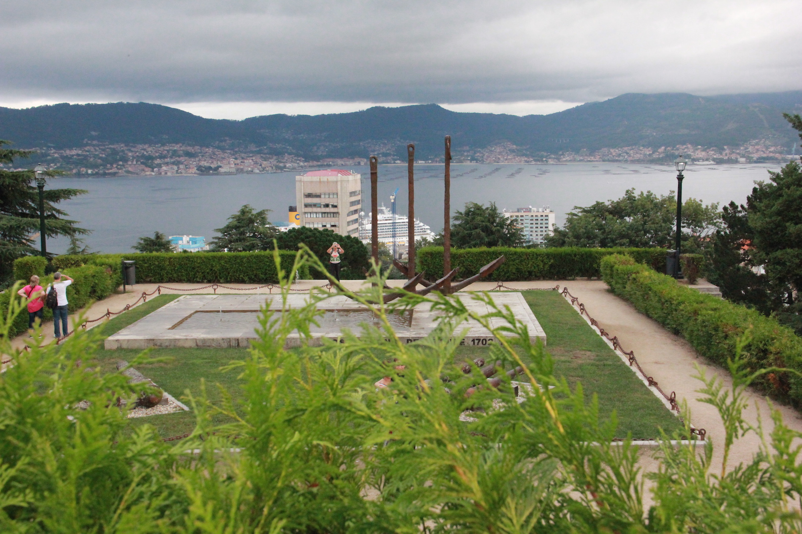 Después de un día de navegación completo llegamos a Vigo. A las nueve de la mañana ya habiamos bajado del barco, los comercios aún cerrados y el cielo amenazando lluvia, solo los cruceristas andabamos por las calles del centro. Nos fuimos a Monte O Castro un parque en la parte alta con unas buenas vistas de las rias y que hicimos a pie y la verdad que nos costó llegar pero mereció la pena.