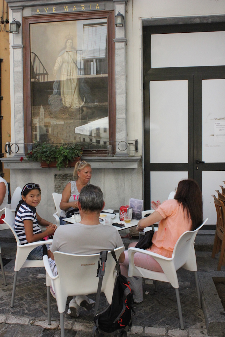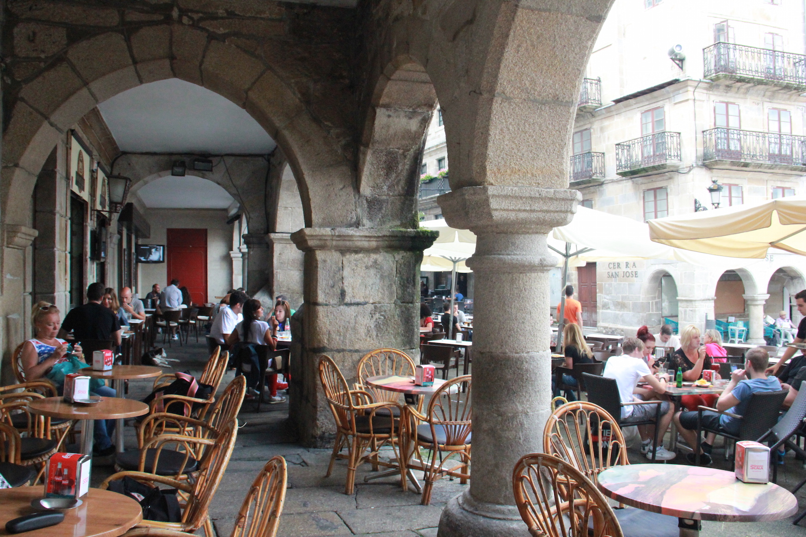 Antes de embarcar, un café y un gintonic en un soportal de los muchos que hay por la ciudad.
