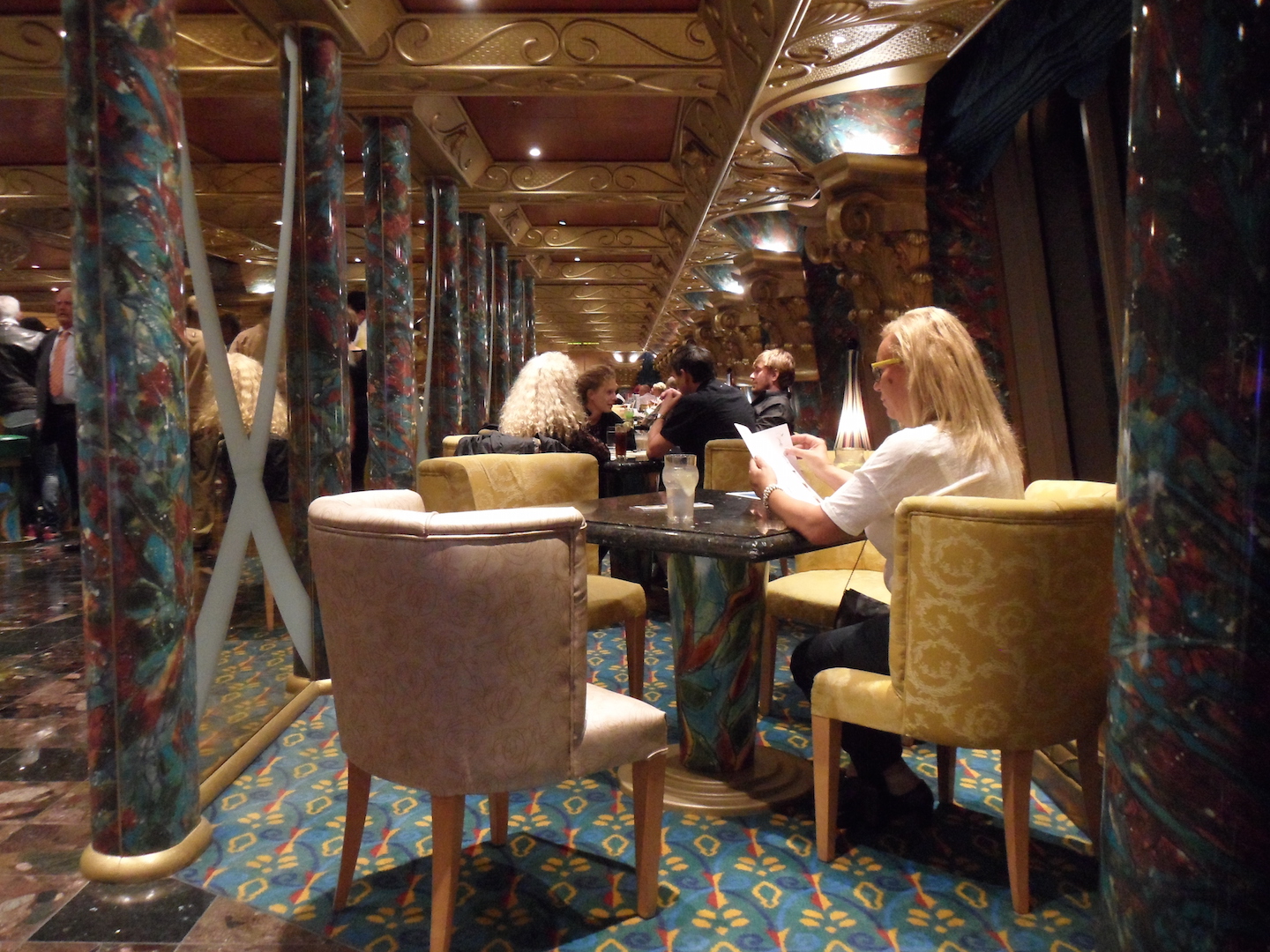 Después a recorrer el barco para conocerlo. La decoración italiana es super recargada, tiene que pasar un buen tiempo para que tu vista se acostumbre, pero eso no quita para que las instalaciones sean estupendas.