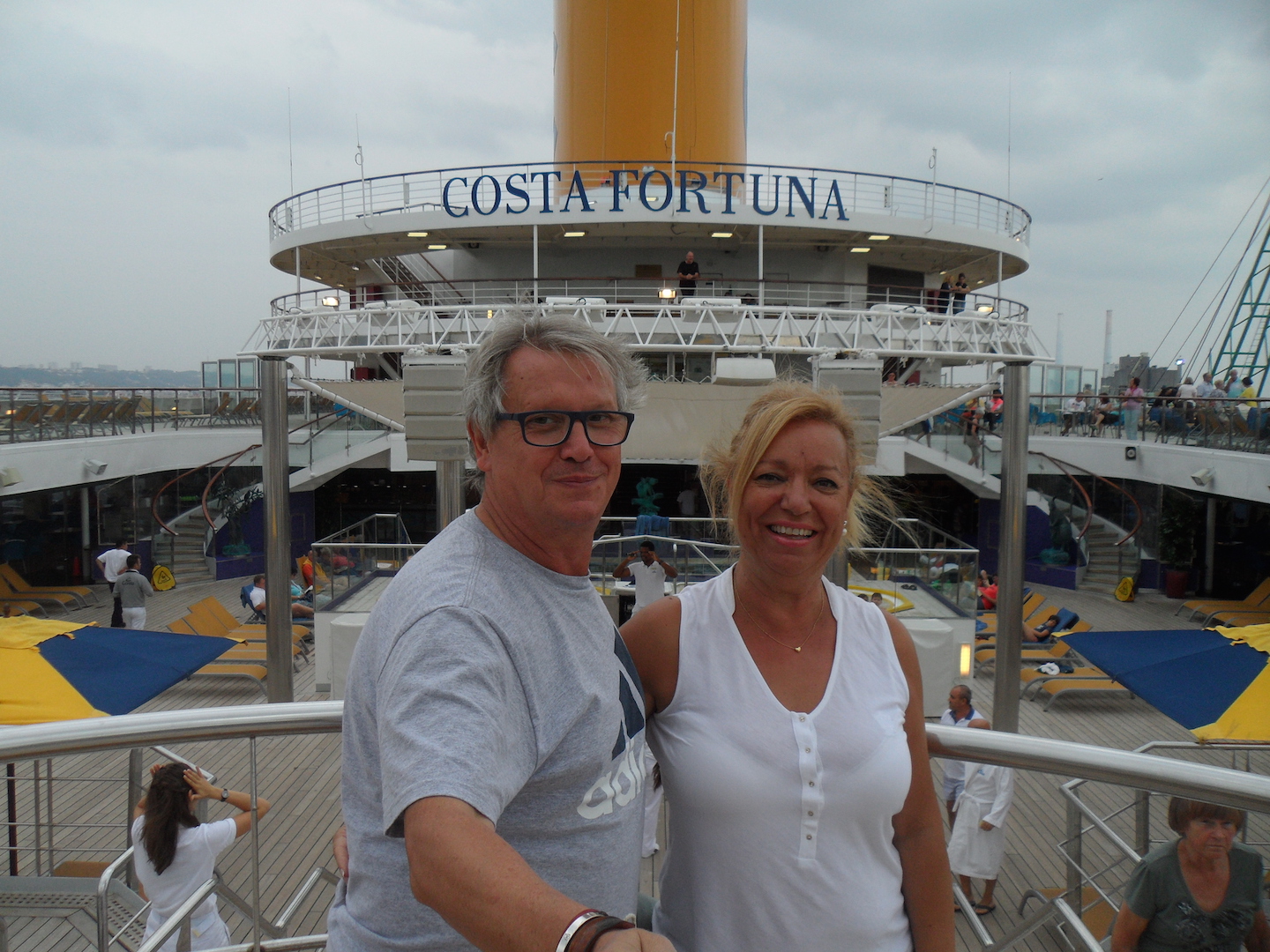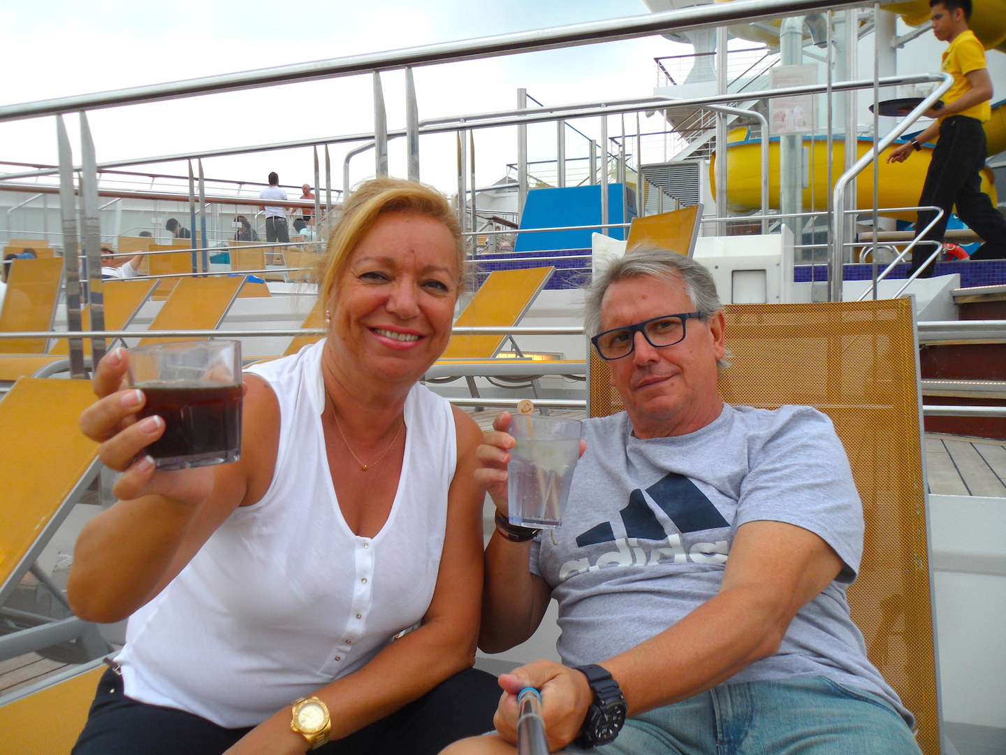El día del embarque y el siguiente fueron de navegación en dirección a Amsterdam, así de relax por el barco y la cubierta dando buena cuenta del paquete de bebidas con todo incluido que compramos para todo el crucero.
