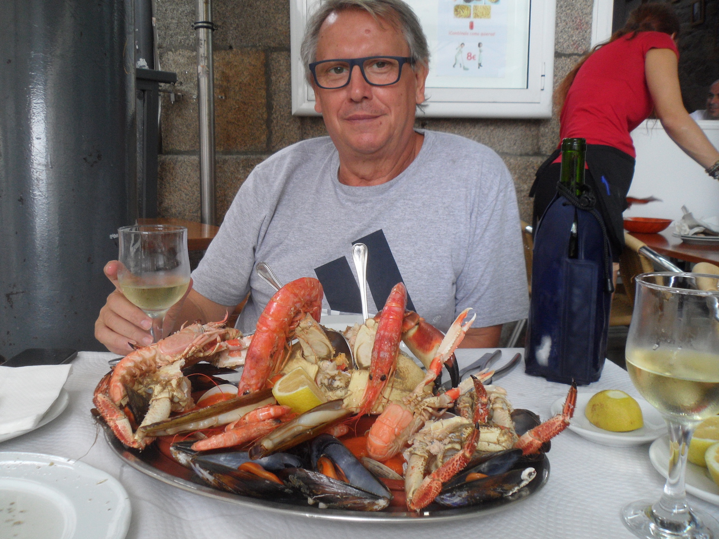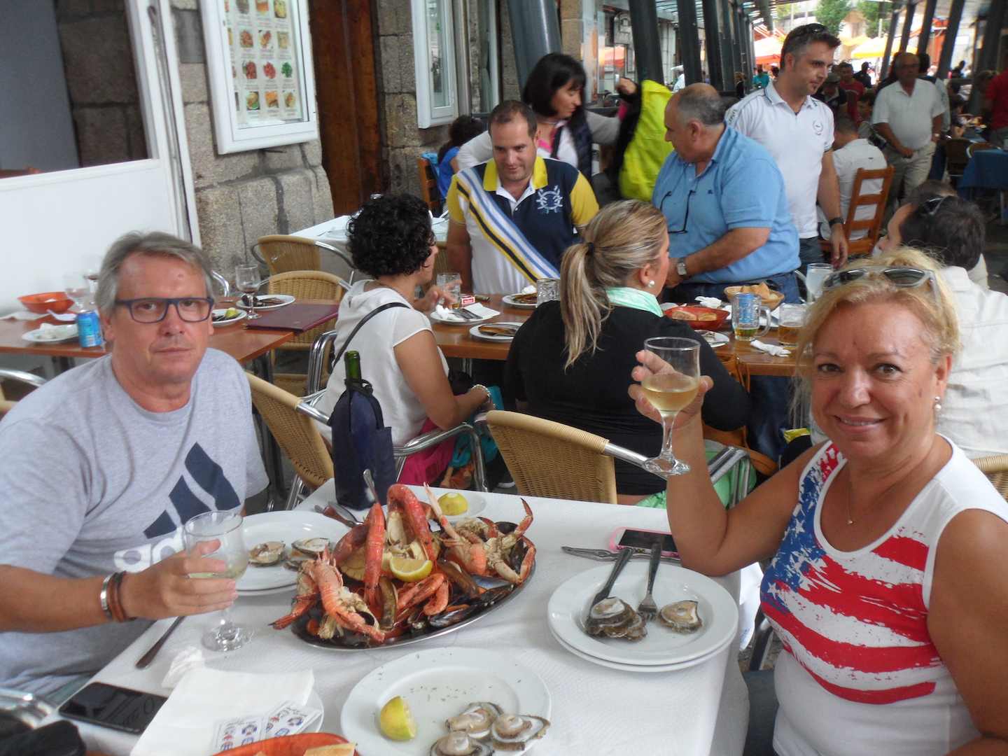 De ahi fuimos bajando hacia el centro y después al mercado de la Piedra donde hay muchas tiendas de copias de marcas pero no compramos nada. Pero quedaba lo mejor para mediodía, visitar las tipicas marisquerias y ostrerias, donde por supuesto dimos buena cuenta con una buena mariscada, ostras y buen vino albariño.