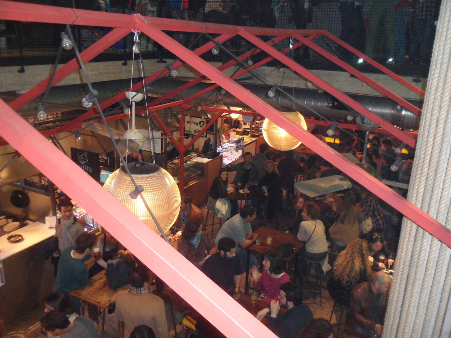 En Madrid proliferan los mercados llenos de bares de tapas y exquisiteses. Aqui una cervecita en el Mercado de Fuencarral.